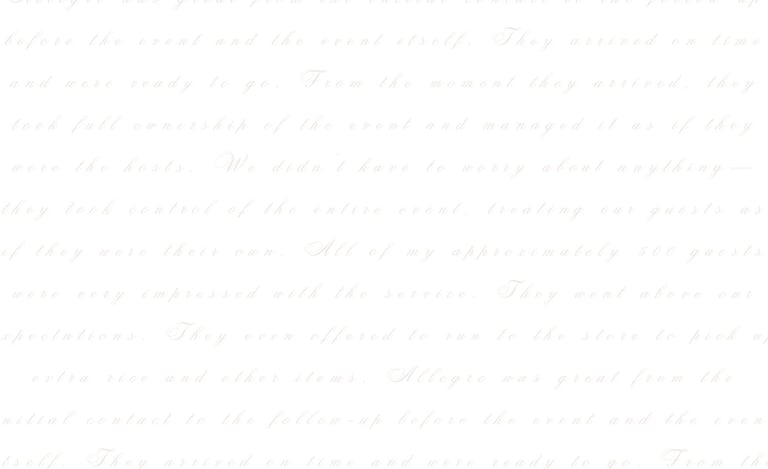 Despite the size and complexity of the celebration, the event ran smoothly—thanks to seamless coordination between Allegro’s staff and the wedding vendors.