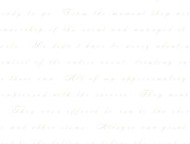 We hired Allegro Events for our wedding in January...They were amazing, I would DEFINITELY recommend! -Rebecka Santos